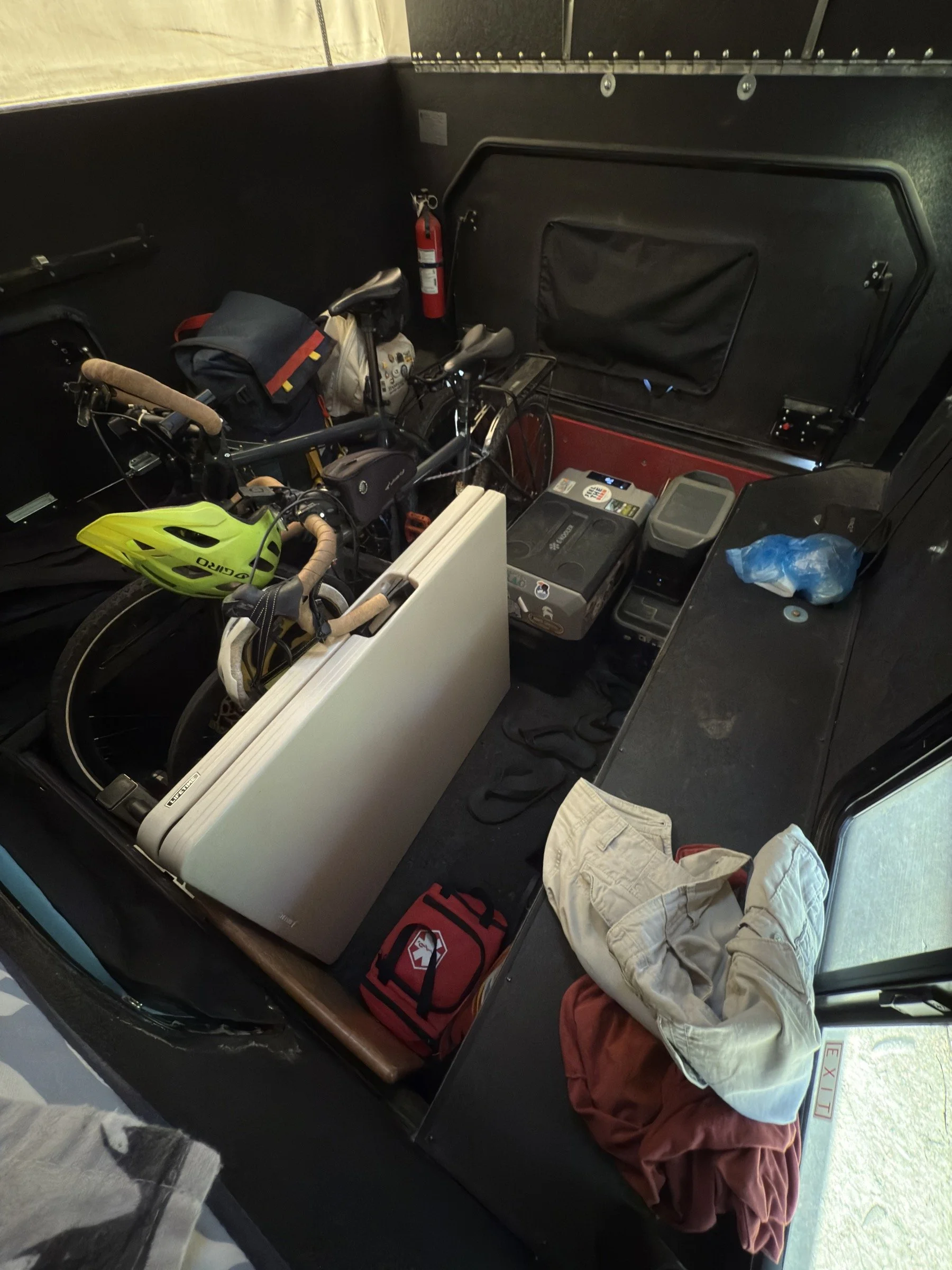 The road was rougher than usual and I couldn’t get to the camping spot I spotted with a satellite map, but we were happy to have at least found a spot that was private and where noise was low enough for us to sleep (there were other pullouts we saw, but they were directly below electrical lines and I found the noise they made to be unsettling).
