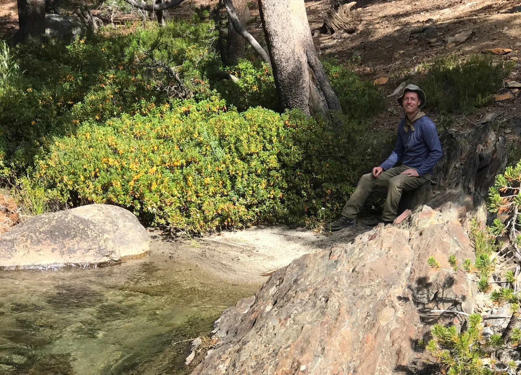 The next morning, we woke up lazily and only really got out of our beds once the sun graced us with its brilliance. We needed every bit of the sun, as the temperature dropped below 40 degrees. Steve decided to warm up his bones by hunting for game at a nearby favorable habitat, while Louie and I did a bit of bouldering while exploring and learning how to fish.