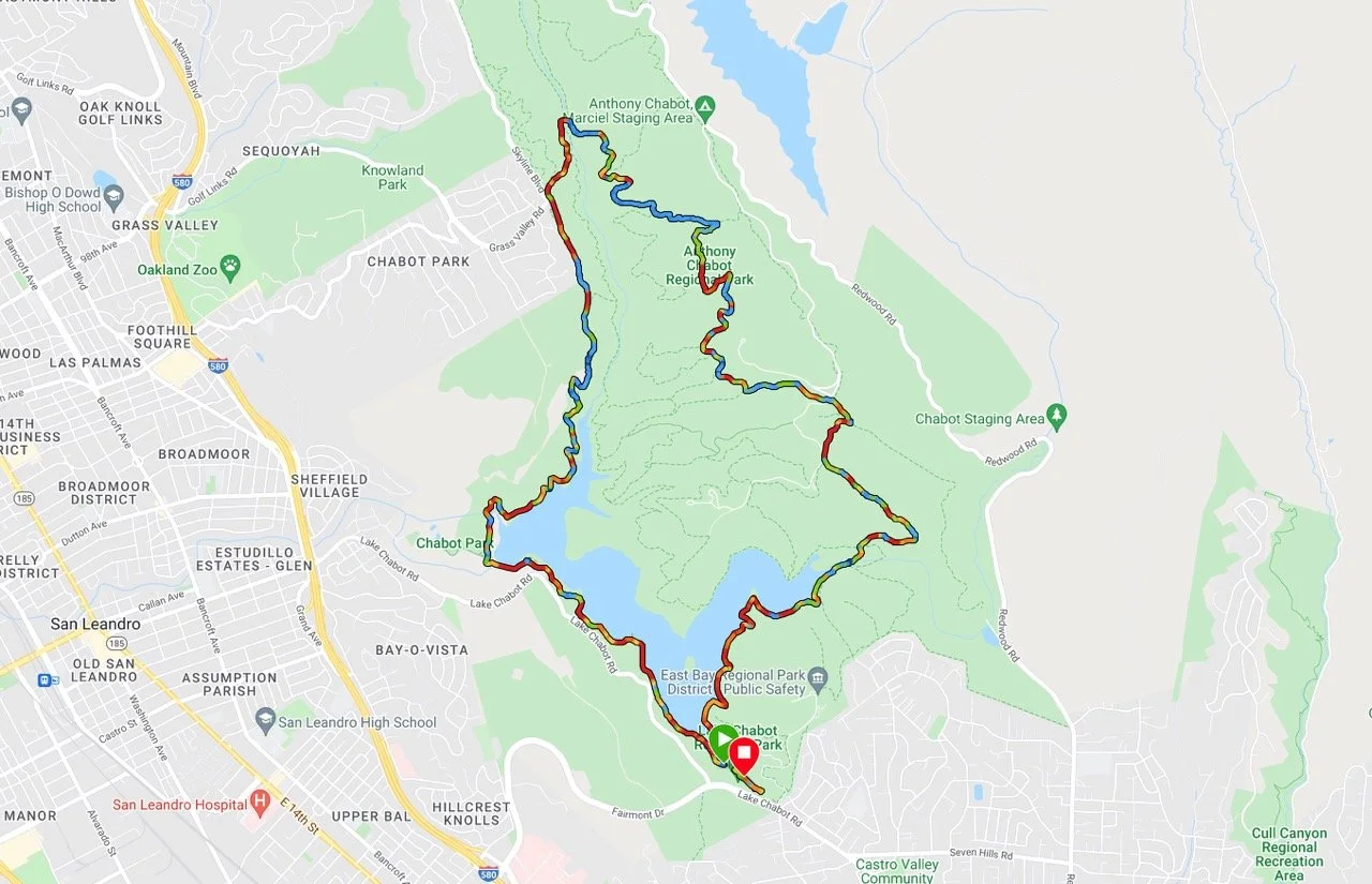 After Three Bears Loop, I wasn’t sure if I wanted to bike another 10 miles with 1000+ft of elevation gain. But, I had felt so good on the morning ride, that I went for broke and headed over to Anthony Chabot Regional Park.