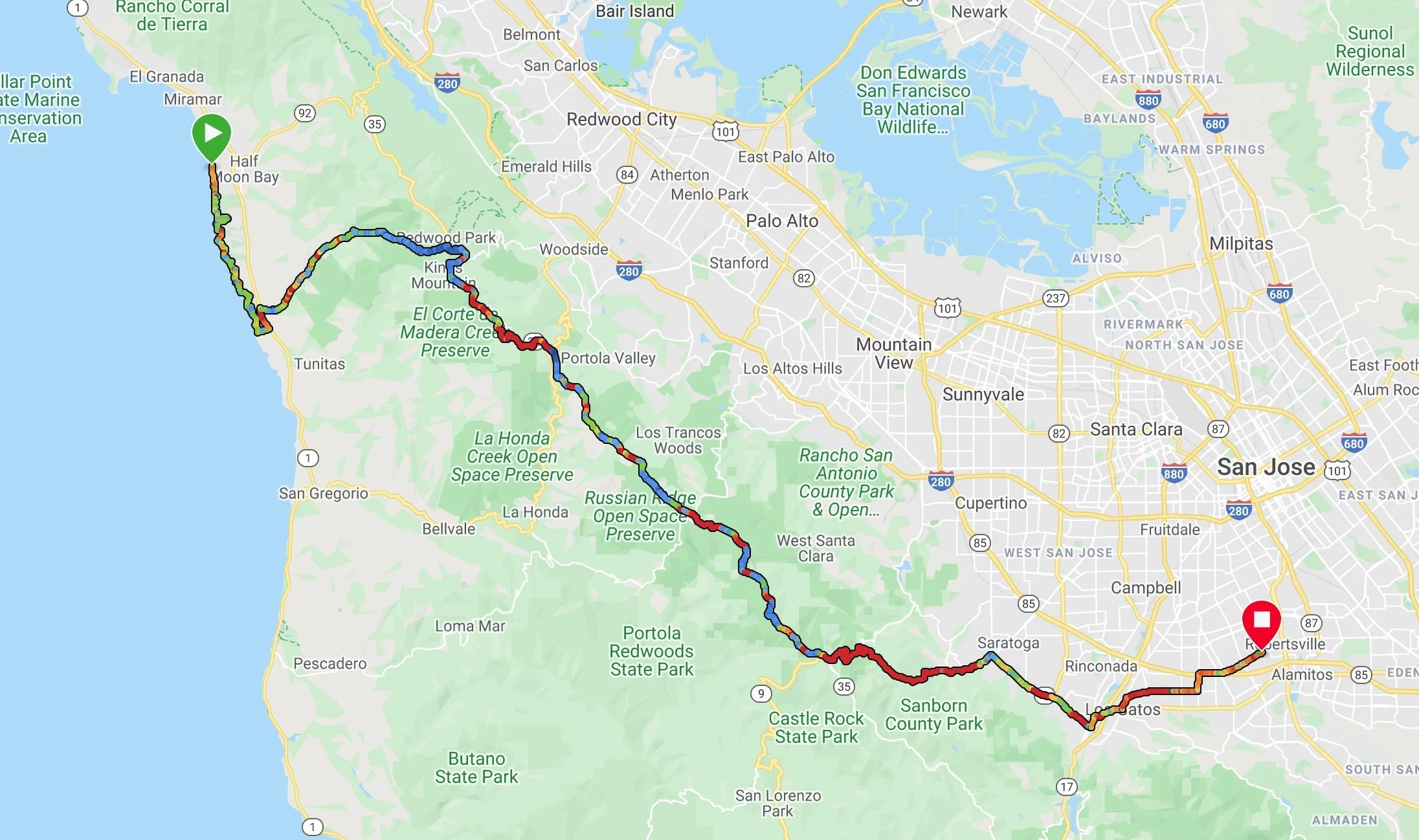 Once I got to Saratoga, I took a snack break (a small can of Pringles FTW!), and then headed home through local roads. What I remember on this portion is feeling how easy the bike moved on flat roads. I had biked through so much elevation change during the day that I had forgotten how joyous (and fast) biking through flat roads were.