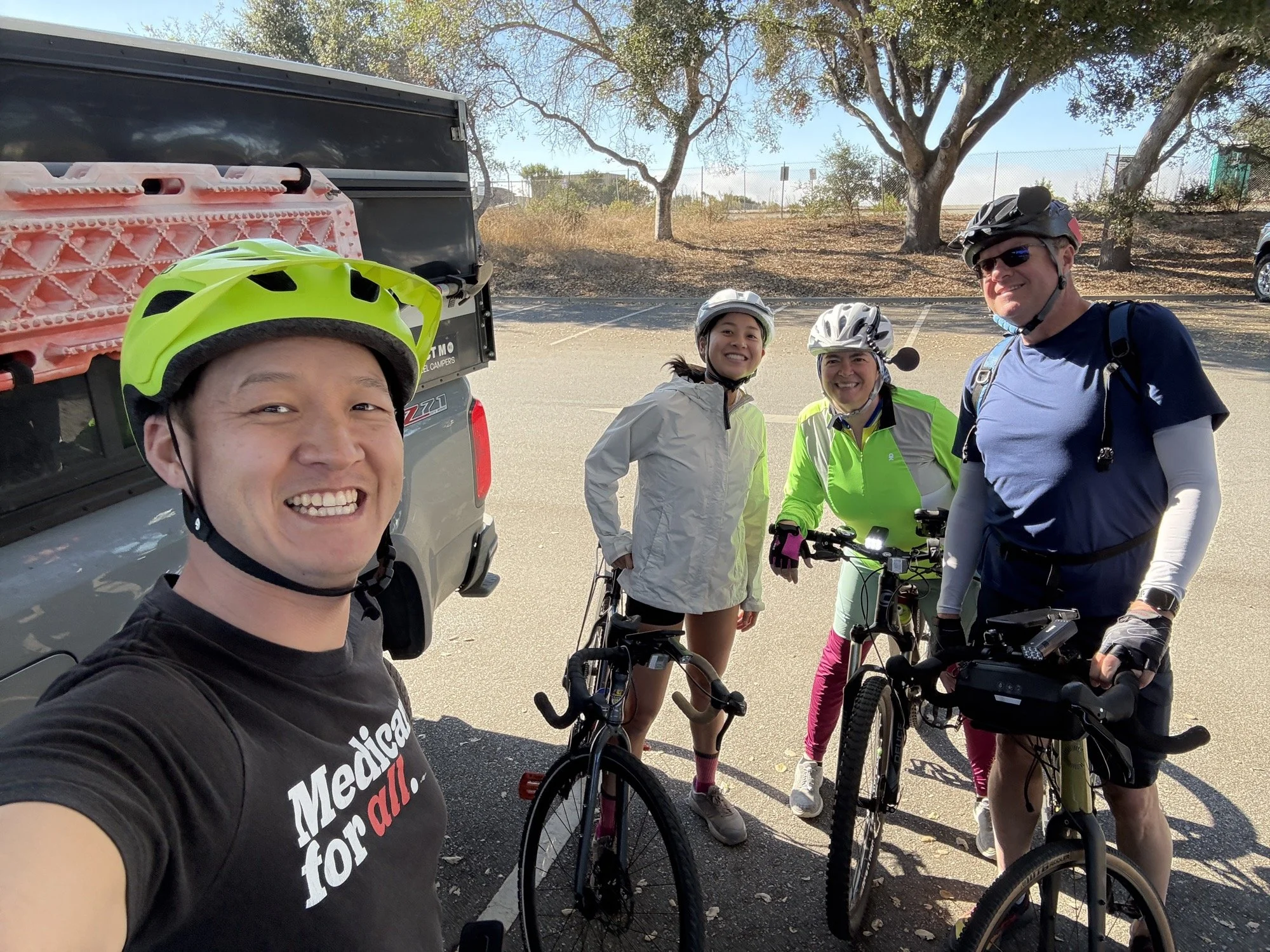 Cassie and I rode to our car first, loaded our bikes, and then hid behind Mike and Andi’s car to surprise them when they got there. Funny enough, they surprised us as we didn’t hear their bikes coming! After some chatting and goodbye hugs, we drove back to San Jose tired but satisfied.