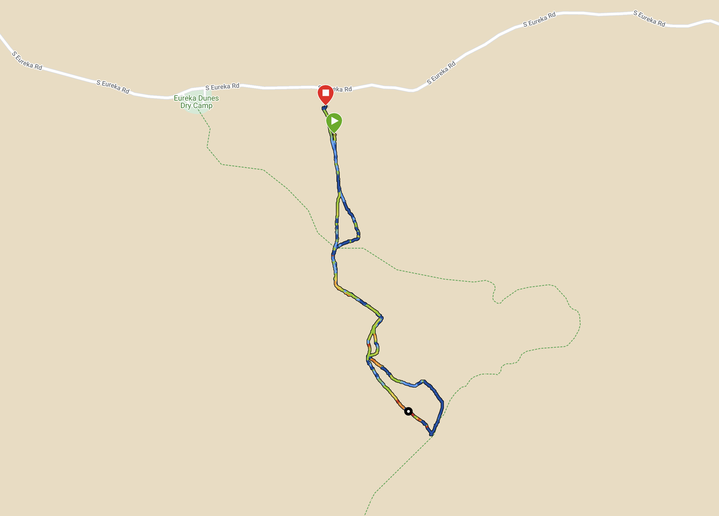 Near the top of Eureka Dunes, I had a mild panic attack as my fear of heights kicked in. It was illogical given how much the sand would have slowed my “fall,” but I could not reason my way out of it and was paralyzed. Cassie got the truth out of me within a minute and coached me through it (once I told her that I did want to reach the top). With Cassie’s help, I was able to slowly get to the top. While the years of rock climbing have helped me with my fear of heights, it looks like it has not been defeated yet.