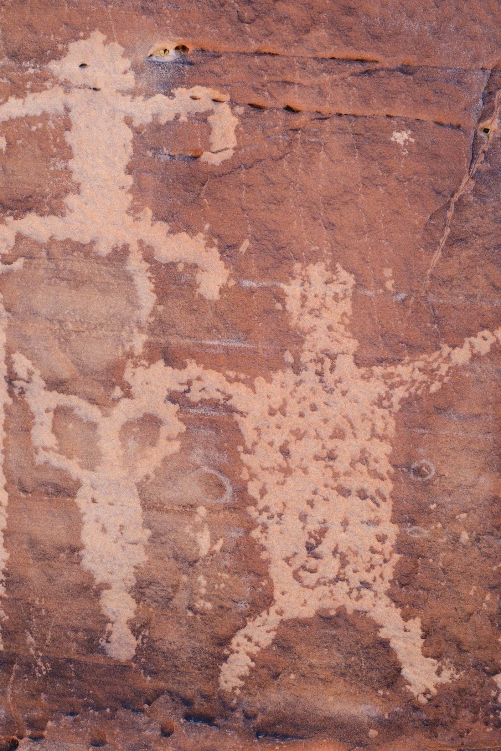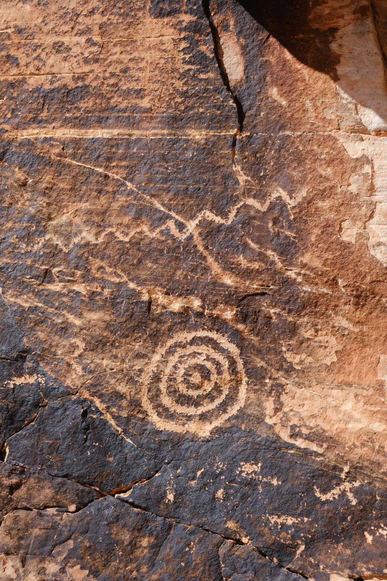 I had found GPS coordinates of a few standout petroglyphs, and we first headed to Newspaper Rock as that had stood out to me on the pictures that I had seen. Because there are no designated trails and multiple levels to this site, we tried to find a way to the GPS coordinate for Newspaper Rock, but found ourselves about 30 feet too high for where it should be. We found a gully that we scrambled down, and we were able to get to it.