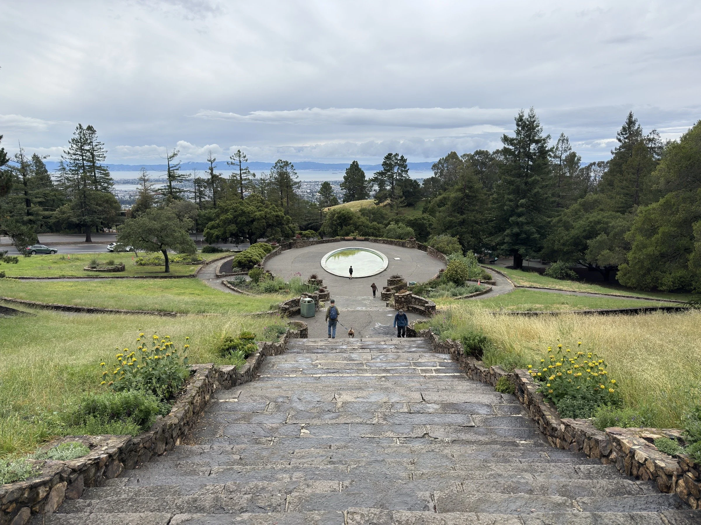 One of the coolest things about this park is that the path we walked took us on or near the stairs at The Cascade (a beautiful waterfall feature with stone stairs), the Woodminster Amphitheater (an open-air theater where plays are performed), and the Chabot Space & Science Center (an observatory and planetarium).