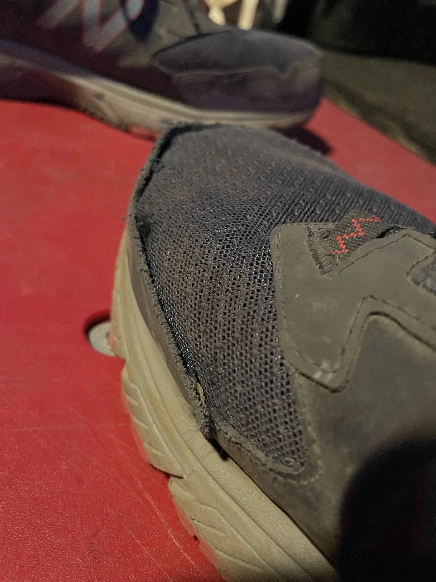My New Balance trail runners were only 30 miles old, but I discovered that the front seam in the right shoe was completely undone. I wasn’t sure if it’d survive this hike (I was about two miles into this hike before I saw the damage), but it barely made it. Shoes are such an important component that I’m not sure if I can just ignore an equipment failure like this. I think I’ll stay away from cheap ($30-50 range) trail runners from New Balance.