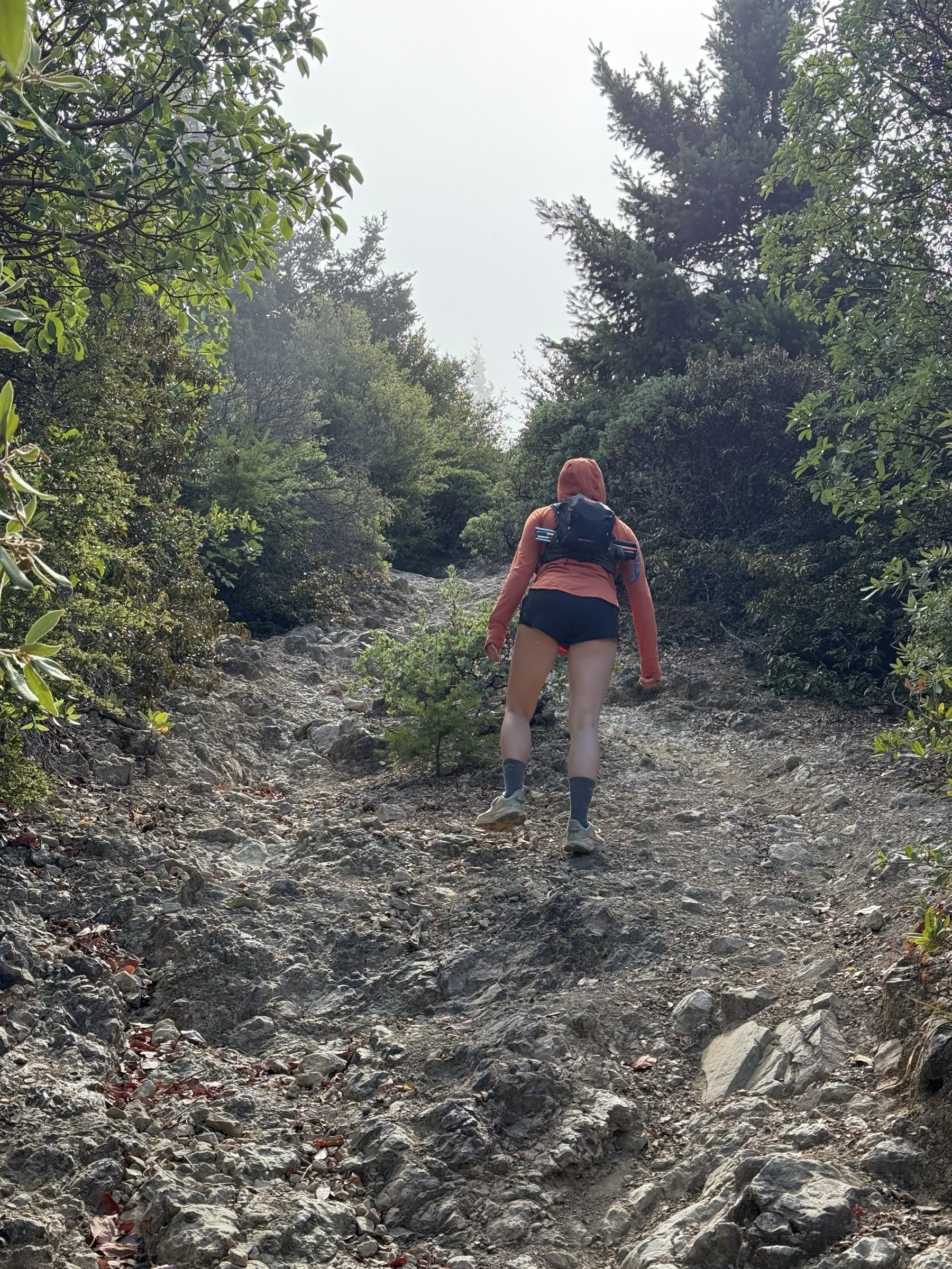 The trail finally intersected another, and we decided to follow that to the south side of the mountain. I was hoping that we would be done with slippery scree that made up the majority of the East Peak Fire Trail, but when we got to Wheeler Trail, we got to go down some slippery stuff. Thankfully, Wheeler wasn’t as bad as the other, and we made it down to the fire road without falling. For the next 2-3 miles, we stayed on the fire road to the Inn and regained all the elevation we had lost (and then some). Whenever the trail had a direct line of sight to the ocean, we would get hit in our face with fog and fine-dirt from the trail; whenever we had the mountain the way of the ocean side, we would have totally calm conditions. This Jekyll and Hyde show continued all the way up to the West Point Inn, where we rested, and I chose to eat a cup of ramen.