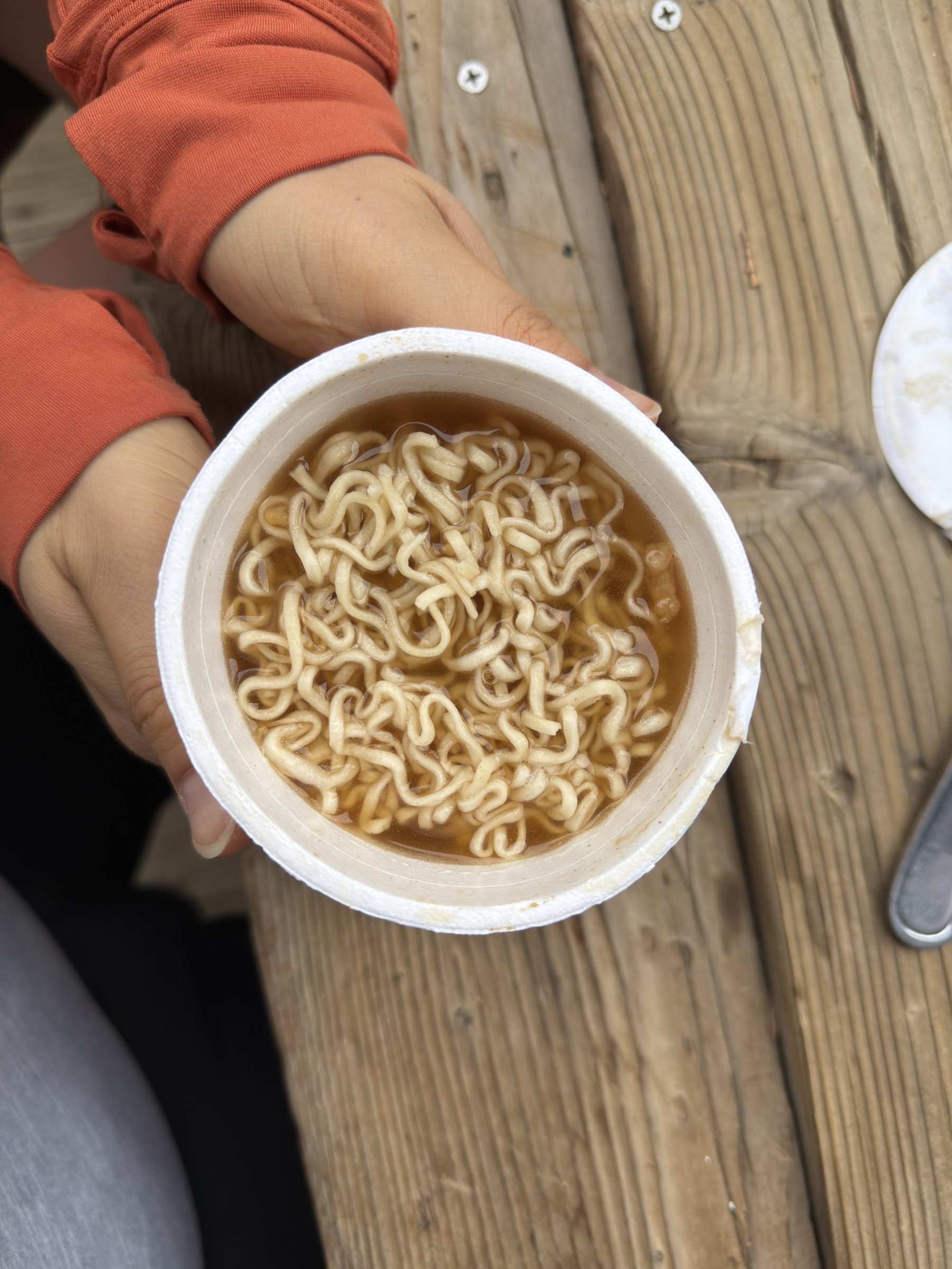 On a long hike, salt gets more and more delicious as I’m on the trail. On this day, just about at the halfway point, we stopped by the West Point Inn. Last year, when Cassie and I hiked to the East Peak from Stinson Beach, we found out this Inn sold ramen to hikers. At that time, we didn’t eat anything. On this day, I paid $2 through Venmo and had myself a Shrimp Maruchan cup ramen (the inn had two hot water dispensers). There were no chopsticks or forks, but when we asked the hotel guests where we could find a fork, they directed us to the off-limits-to-hikers kitchen. The ramen was oh-so-delicious as I craved salt. On the next hike, Cassie and I are now thinking about packing ramen and hot water in a thermos. Of course, I washed the fork before leaving the Inn.
