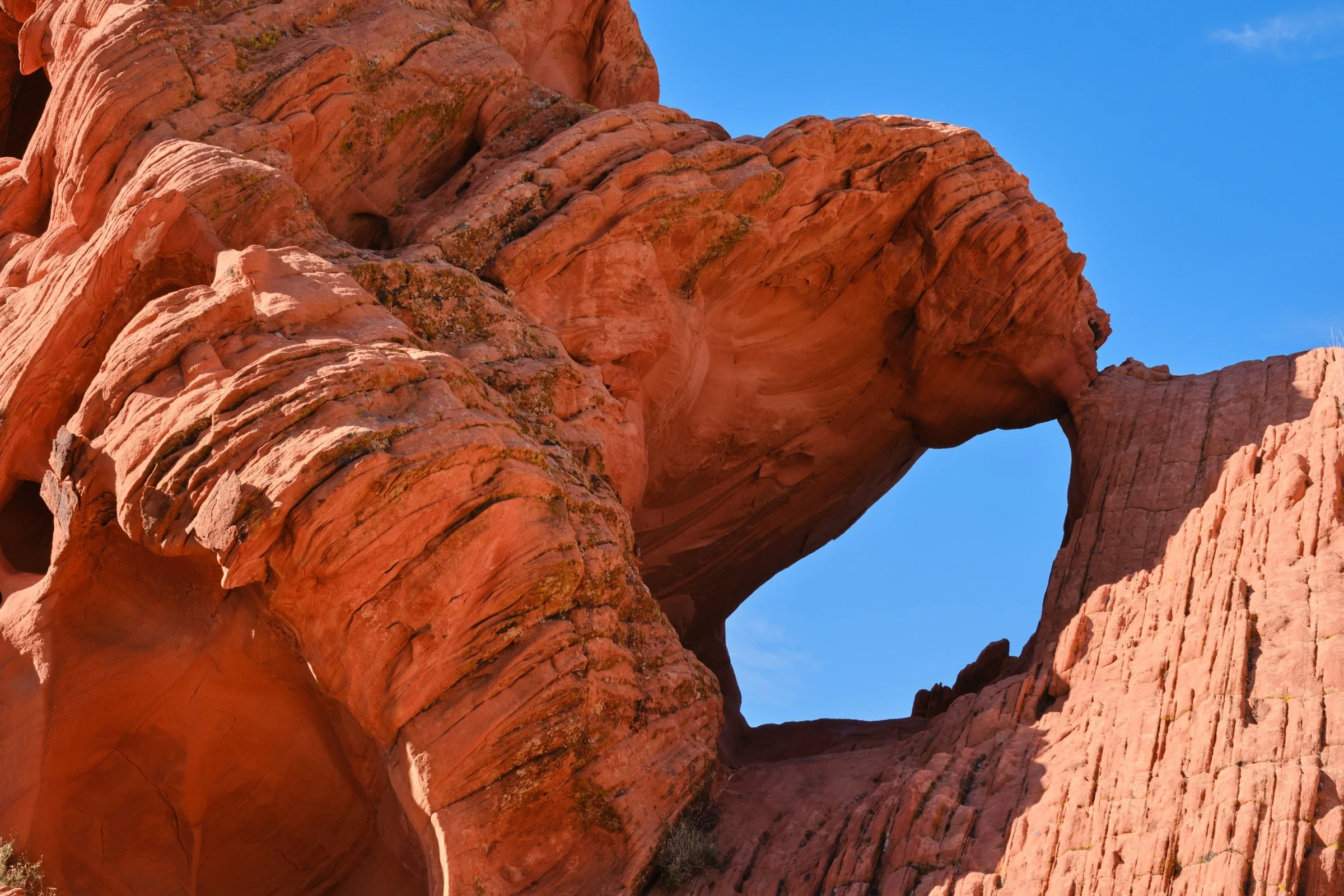 As this was our first time in Gold Butte National Monument, we were wowed by the rock formations and the lack of people enjoying them. There were no trails, but there were still footsteps to follow; we just spent a bit of time scampering over the rock formations and taking in the views. While the rock felt similar to other sandstone rock formations we’ve explored before, the deep orange color was new to us.