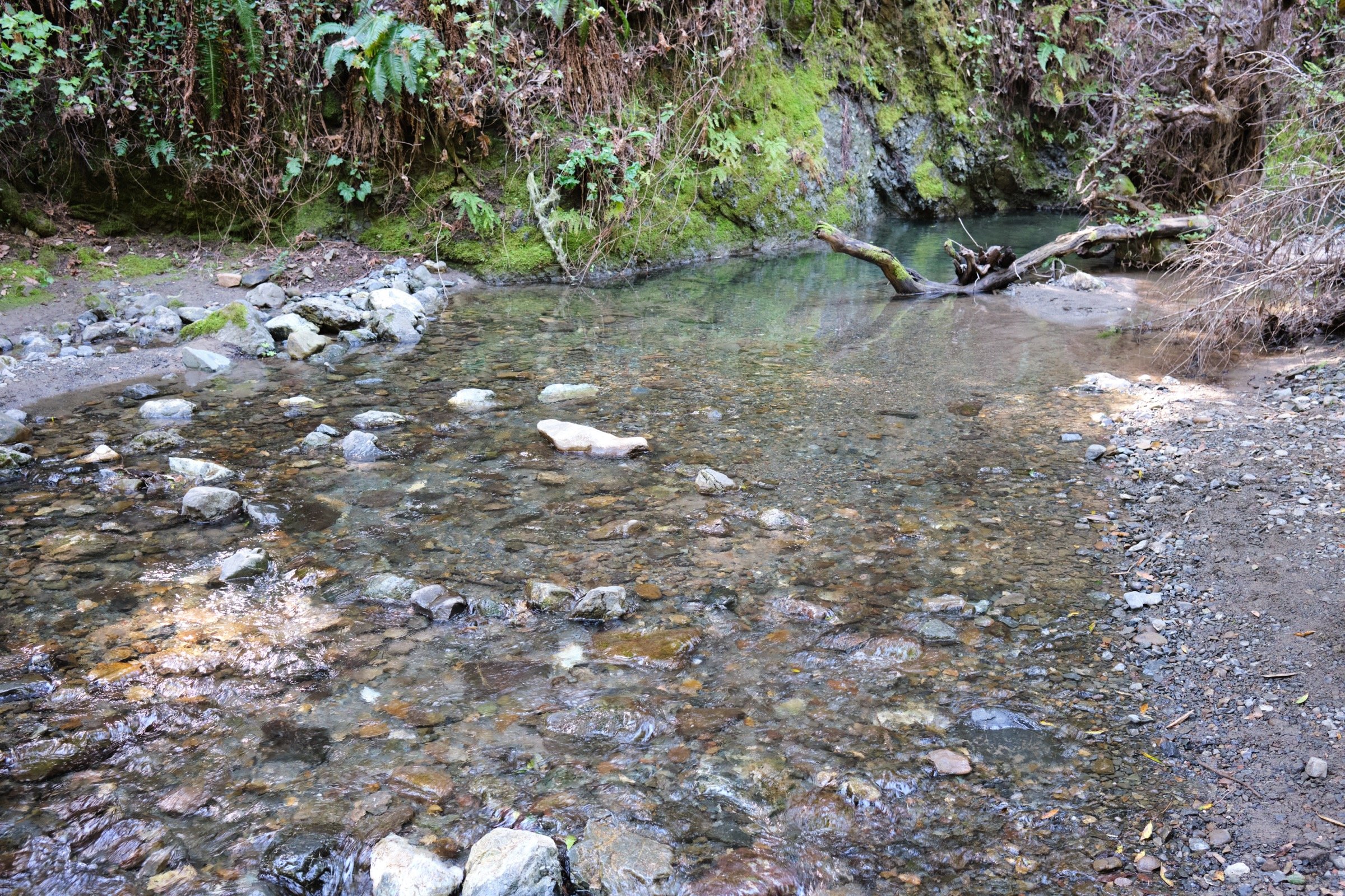 All the creeks were flowing, which I’m sure added to the cooling effect. However, it also meant that there were lots of mosquitoes and other insects. Crossing Stevens Creek was the most challenging bit of the hike, but I’m pretty well balanced with long legs, so it wasn’t so hard for me.