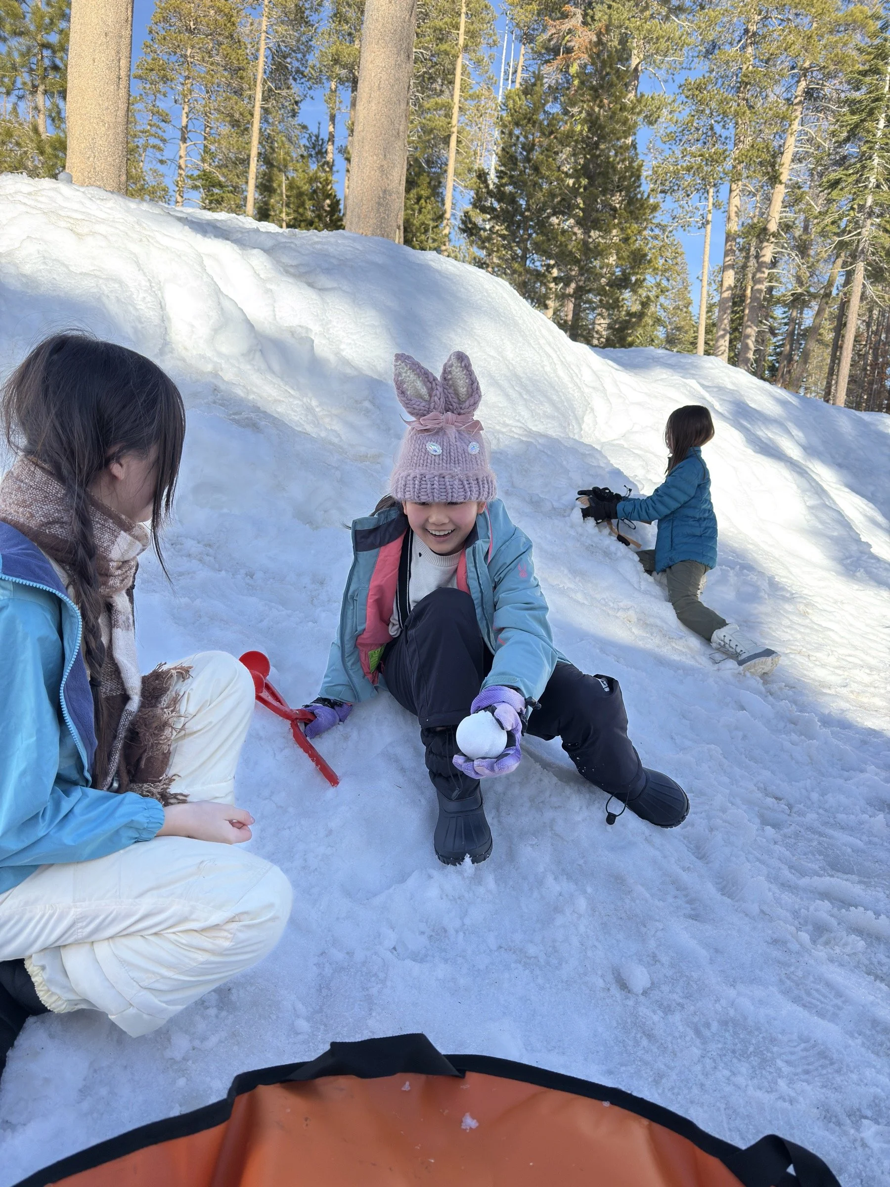 We found the Sno-Park to be peaceful with lots of families having fun in the snow. We joined in by inflating our tubes and smoothing out a ramp that was already there (Ryo did an awesome job with this). We all had a great time sledding and having snowball fights.